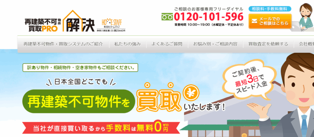 | 株式会社ホームスタッフ(再建築不可物件・買取PRO) | ★★★ | ★★ | ★★★ | 〇 |