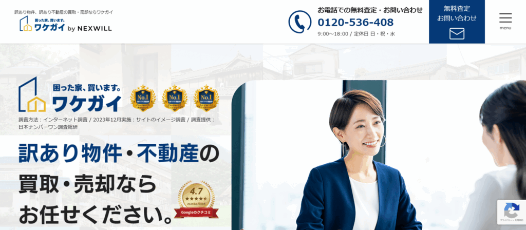| 株式会社ネクスウィル(ワケガイ) | 全国47都道府県対応 再建築不可・共有持分・事故物件・空き家に対応 弁護士・司法書士・税理士と連携 オンライン査定→早期現金化で最短即日買取 賃貸付け・再販売など活用ノウハウあり |