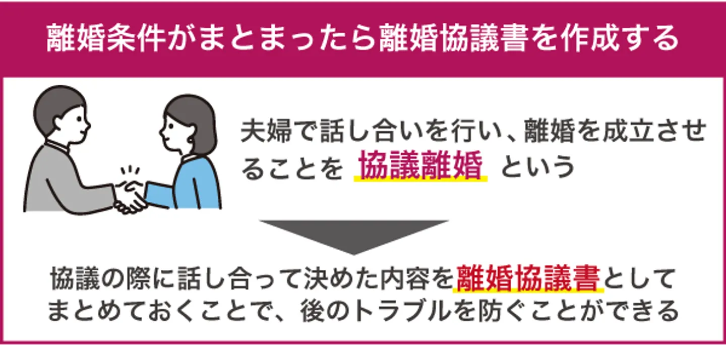 口約束だけで協議離婚することも可能ですが、後に「言った・言わない」のトラブルになる可能性もあるため、合意内容の証拠にできるよう書面化しておくとよいでしょう。
