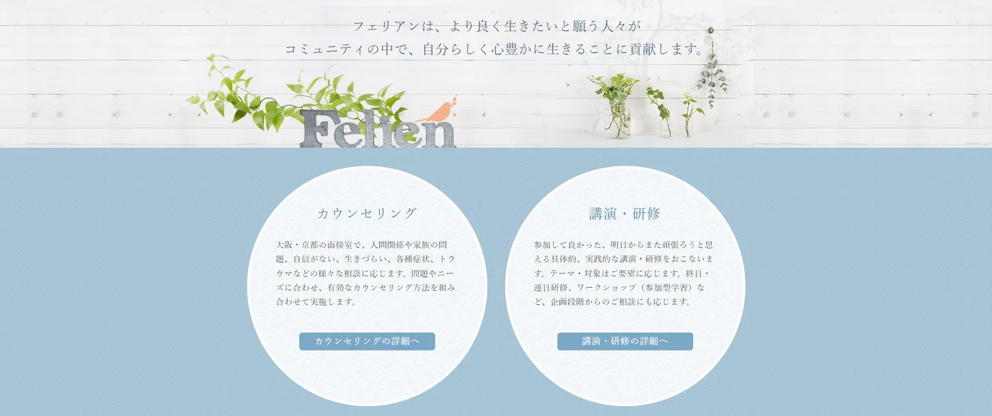 フェリアン大阪は、カウンセラーが全員臨床心理士及び公認心理師の資格を持つ女性で、自分らしく新しい一歩を踏み出すためのカウンセリングを実施しています。