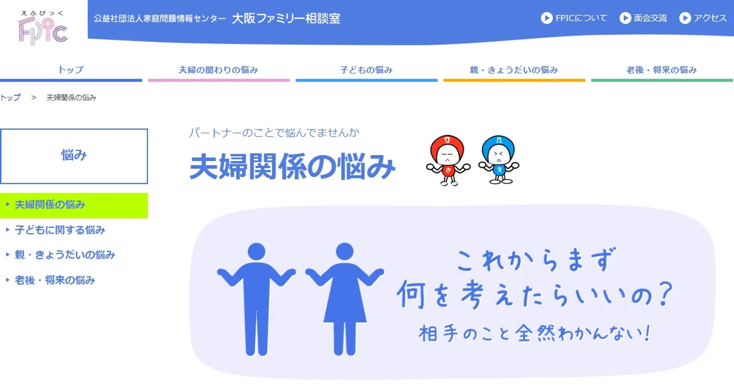 FPIC 大阪ファミリー相談室|夫婦問題だけでなく老後の悩みまで相談できるカウンセラー