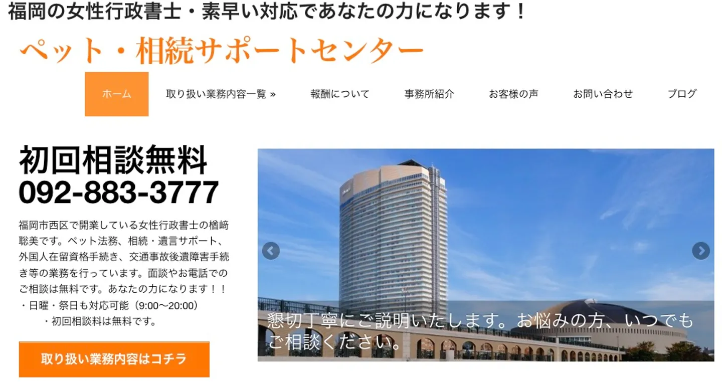 福岡県の西区を拠点に活動している事務所です。ペット法務や相続・遺言手続きのサポートを主な業務としていますが、離婚協議書の作成等も行っています。コラムでは公正証書を作成するメリットや、作成する上での注意点も説明しているので、ぜひご覧ください。