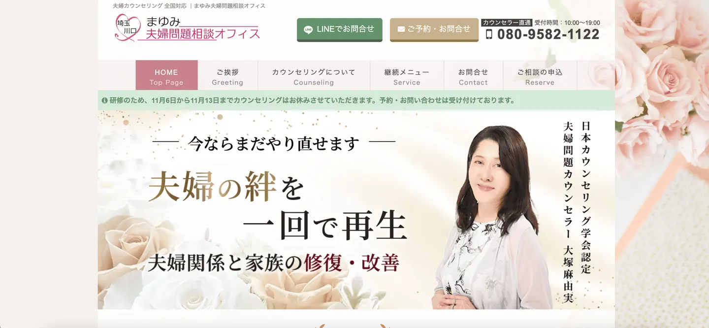 まゆみ夫婦問題相談オフィス|夫婦関係を修復・再構築するカウンセリングが得意