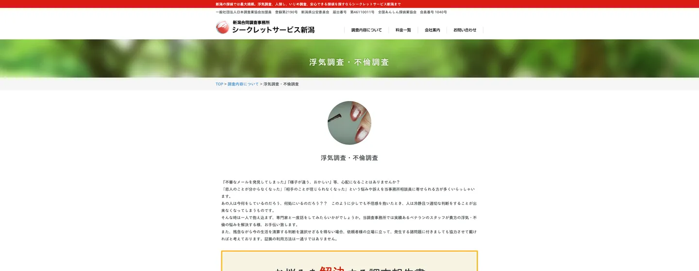 シークレットサービス新潟は、浮気調査に強みを持つ新潟でも規模が大きい探偵社です。