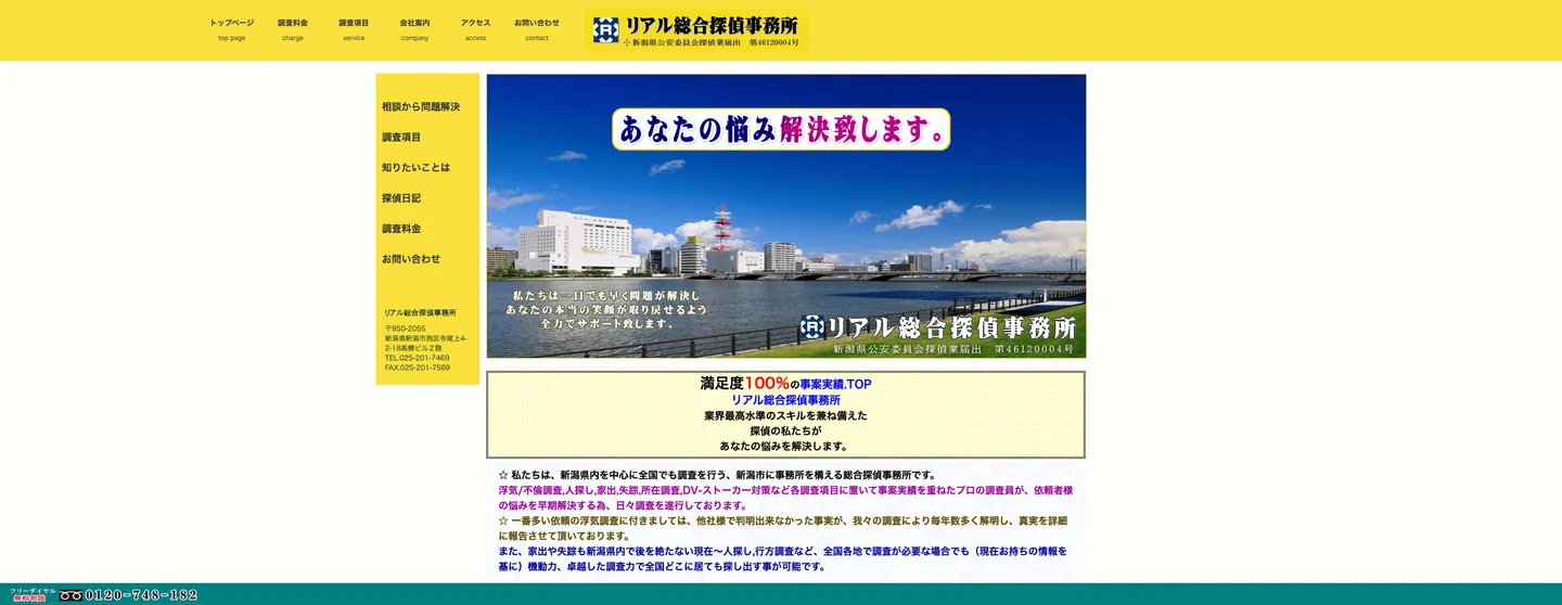 また、リアル総合探偵事務所では、電話やメール、お問い合わせのほか、新潟市に常設するリアル相談室で直接相談を受けることも可能です。実際に会って事前に情報を収集することで、解決までの時間と費用を軽減に努めてもらえます。