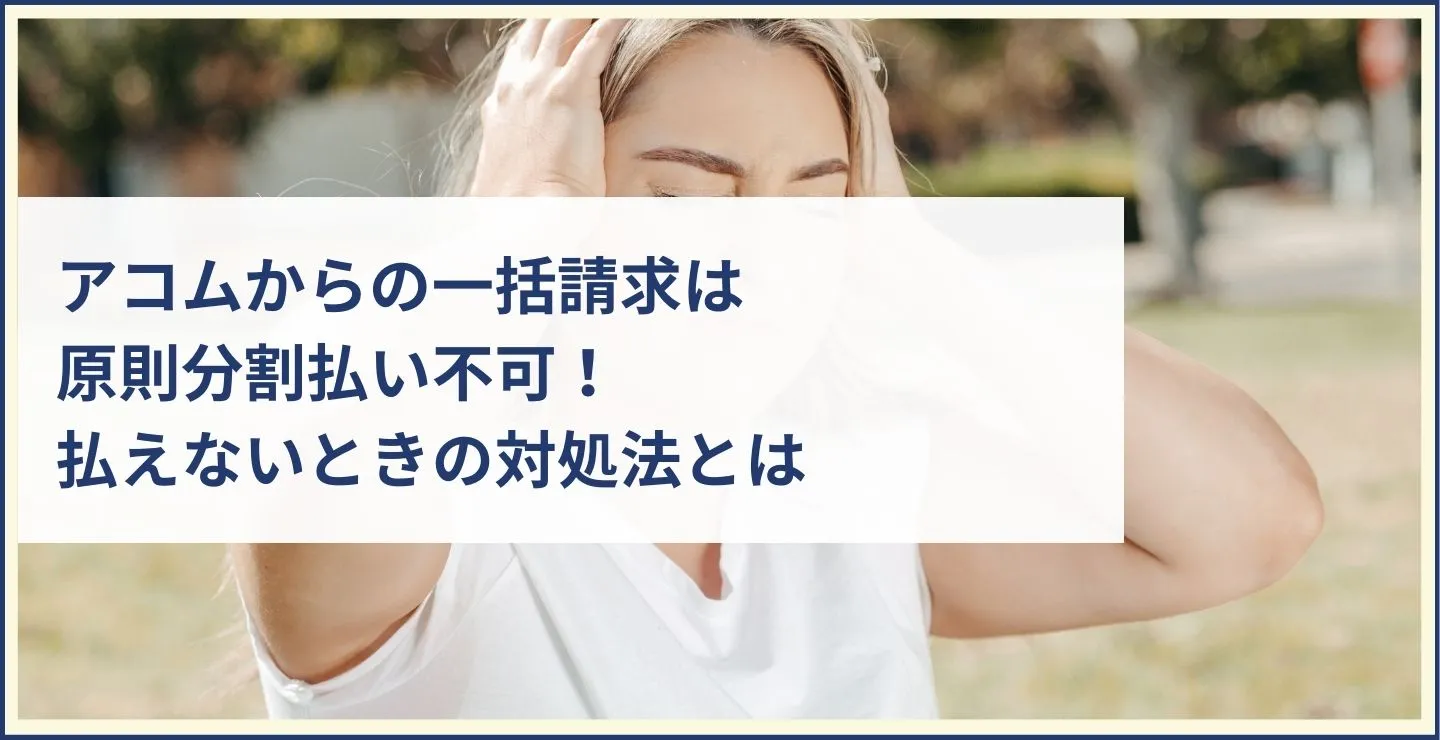 アコムから一括請求されてから分割交渉をしても、原則一括返済しか認められません。とはいえ、今までアコムからの借金を滞納していた人が、突然一括請求をされても支払いは難しいでしょう。