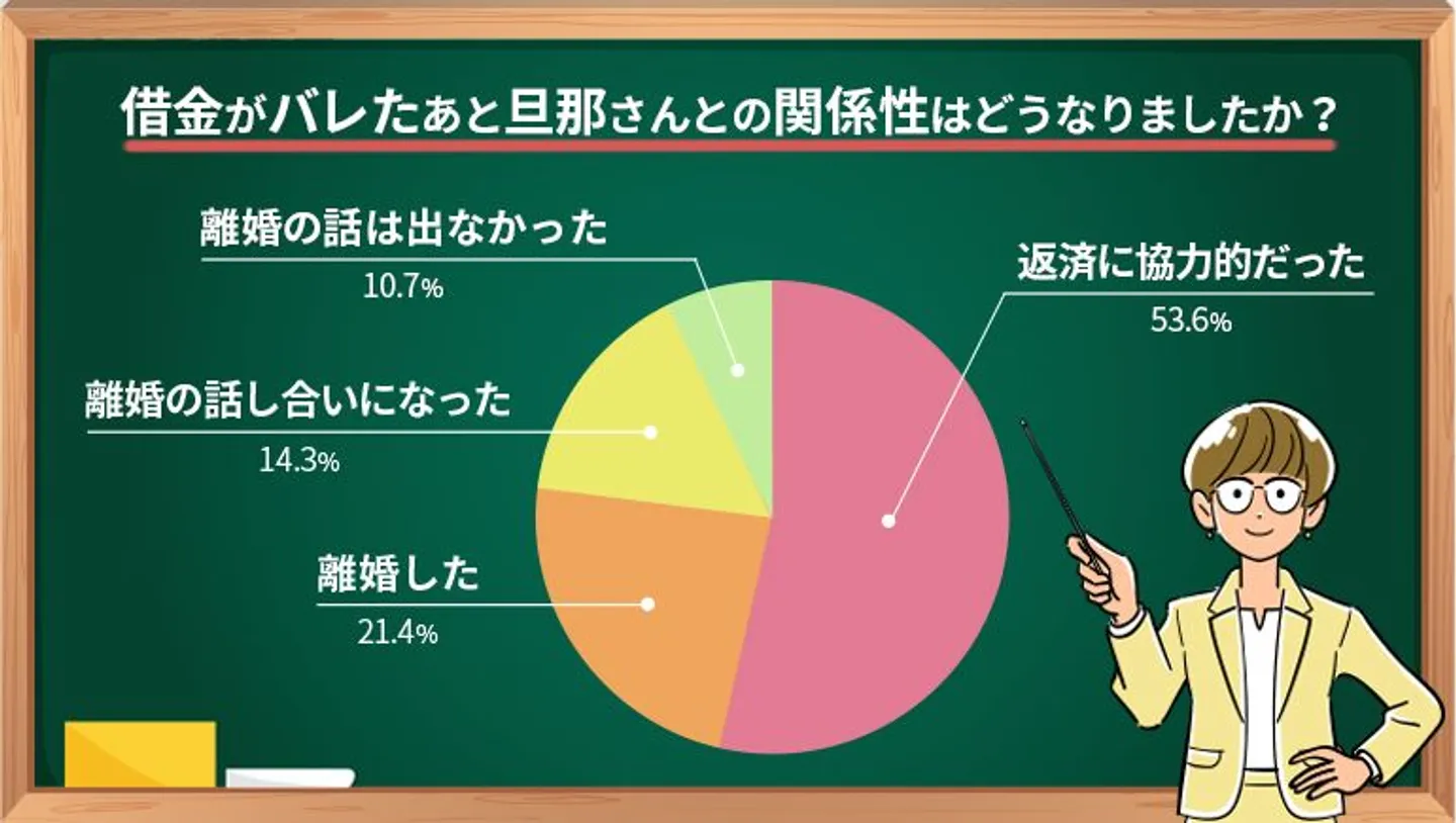 意外なことに、借金がバレたからといって夫婦関係が悪くなるとは限らず、夫が返済に協力してくれるケースも多いようです。