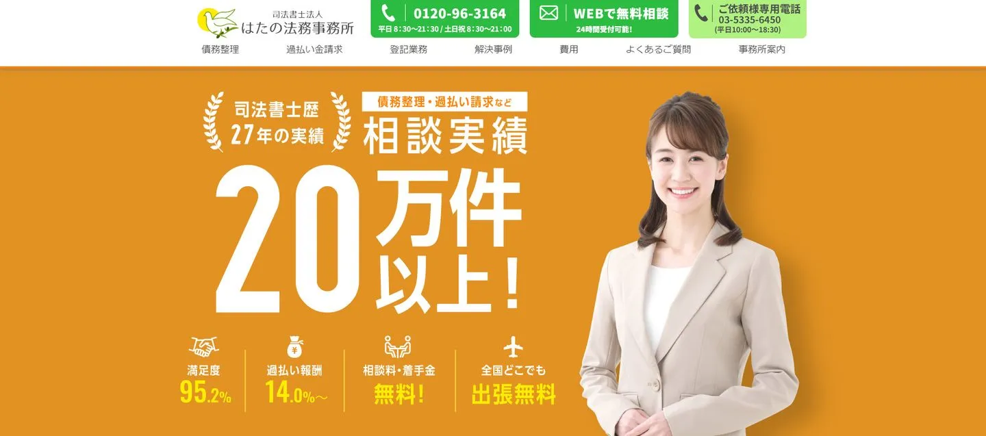 とくに、トップページの目立つところに「◯◯件以上の実績あり」などと記載があり、具体的な解決事例などを紹介している事務所は、過払い金返還請求の実績に自信がある可能性が高いです。