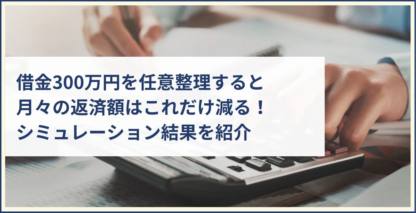 借金300万円の返済が厳しいのであれば、任意整理を利用して利息・遅延損害金をカットしてもらい、毎月の返済額や完済までの返済期間を短縮するのがおすすめです。