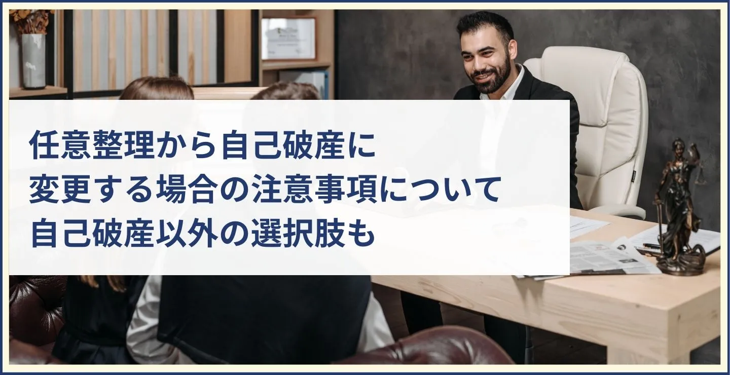 自己破産によるデメリットも回避できますが、同時に借金の返済義務は残るため、完済できる自信があるときのみ任意整理への切り替えを検討しましょう。