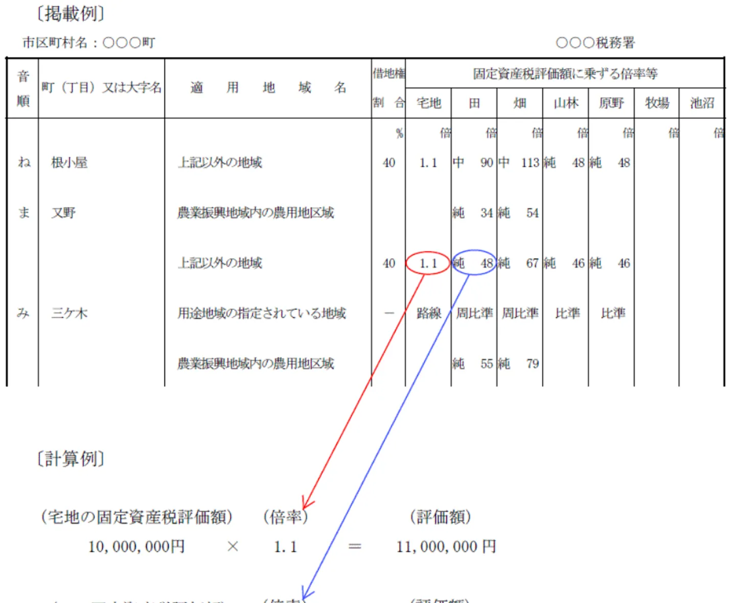 土地の相続税評価額=固定資産税評価額×評価倍率